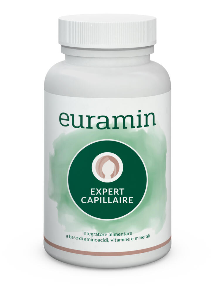 euramin EXPERT CAPILLAIRE integra l’alimentazione di base con gli amminoacidi arginina, glutammina e metionina, le vitamine B & C, la biotina, lo zinco e l’acido folico.